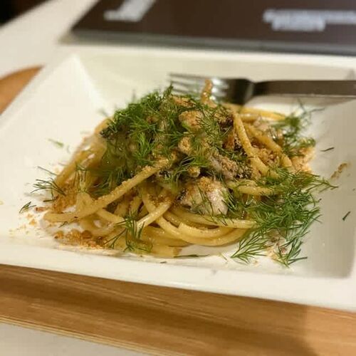 スーパー行ったら、イワシの開いたヤツ2枚があったので、前からやろうと思っていたシチリア風パスタを。これが、結構面倒臭いんですよ…レーズン、松の実、フェンネルシード(コレは無かった)。ウイキョウ代わりにディル。「モッリーカ」なる、刻みニンニク…