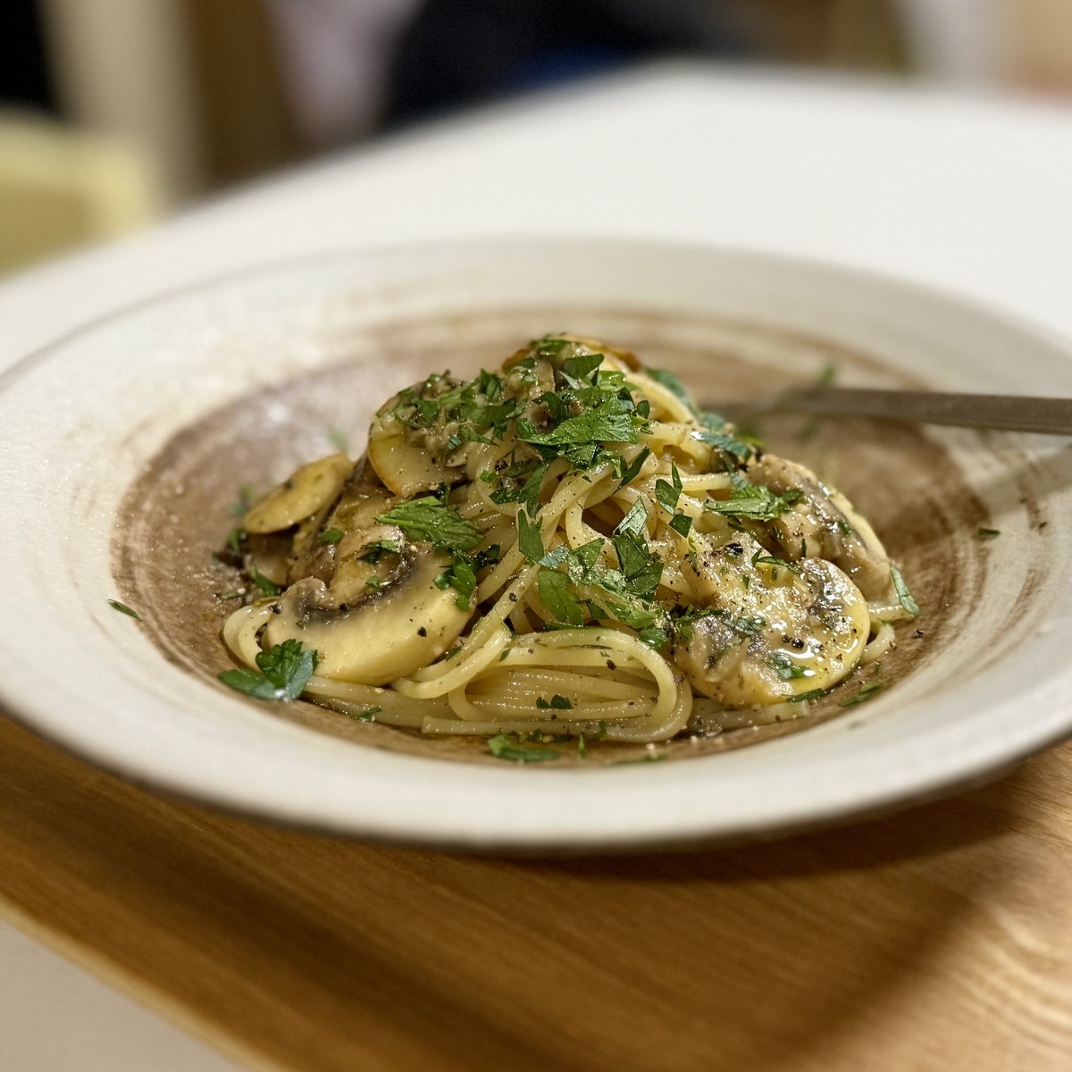 濃厚なバターパルミジャーノ、マッシュルームが合わないわけ無いですね。