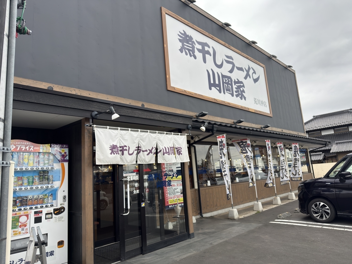 遅いお昼に、近所にある「煮干しラーメン山岡家 荒川沖店」へ。